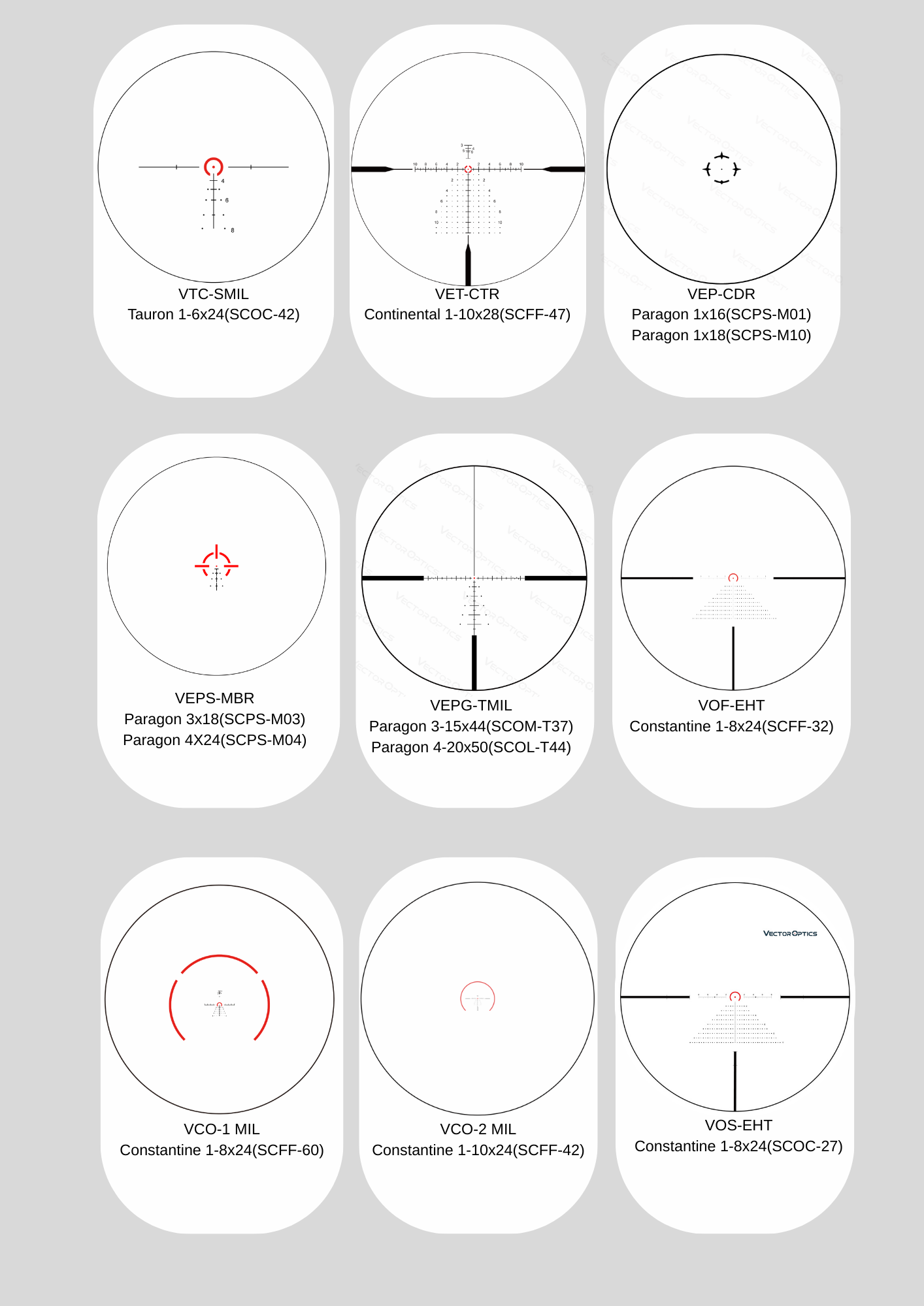 Tüm reticle seçeneklerini detaylı çizimler ve teknik bilgilerle birlikte Vector Optics resmi sitesinde ve Türkiye distribütörlüğümüz altında yer alan ürün sayfalarında inceleyebilirsiniz. Her model sayfasında, hangi reticle ile geldiği ve bu reticle’ın hangi atış senaryolarında öne çıktığı açıkça belirtilmiştir.